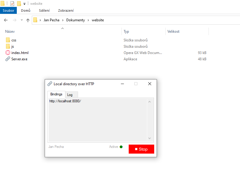 Spouštěcí soubor Server.exe je potřeba umístit do kořenového adresáře stromové struktury statických webových stránek. Serverem pak budou obsluhovány všechny podřízené složky.